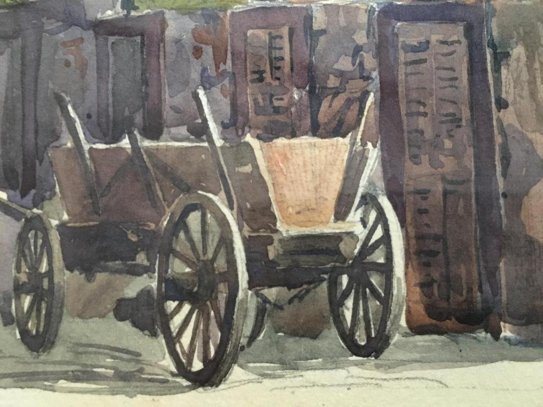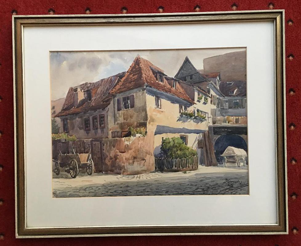 Würzburg. – Marschall, Joseph (1887 – 1917). – ‚Häuseridylle in Würzburg‘ : Original-Aquarell, unten rechts signiert und datiert. 1912. unter Passepartout gerahmt, Rahmen 37 x 45 cm, schöner frischer Zustand,