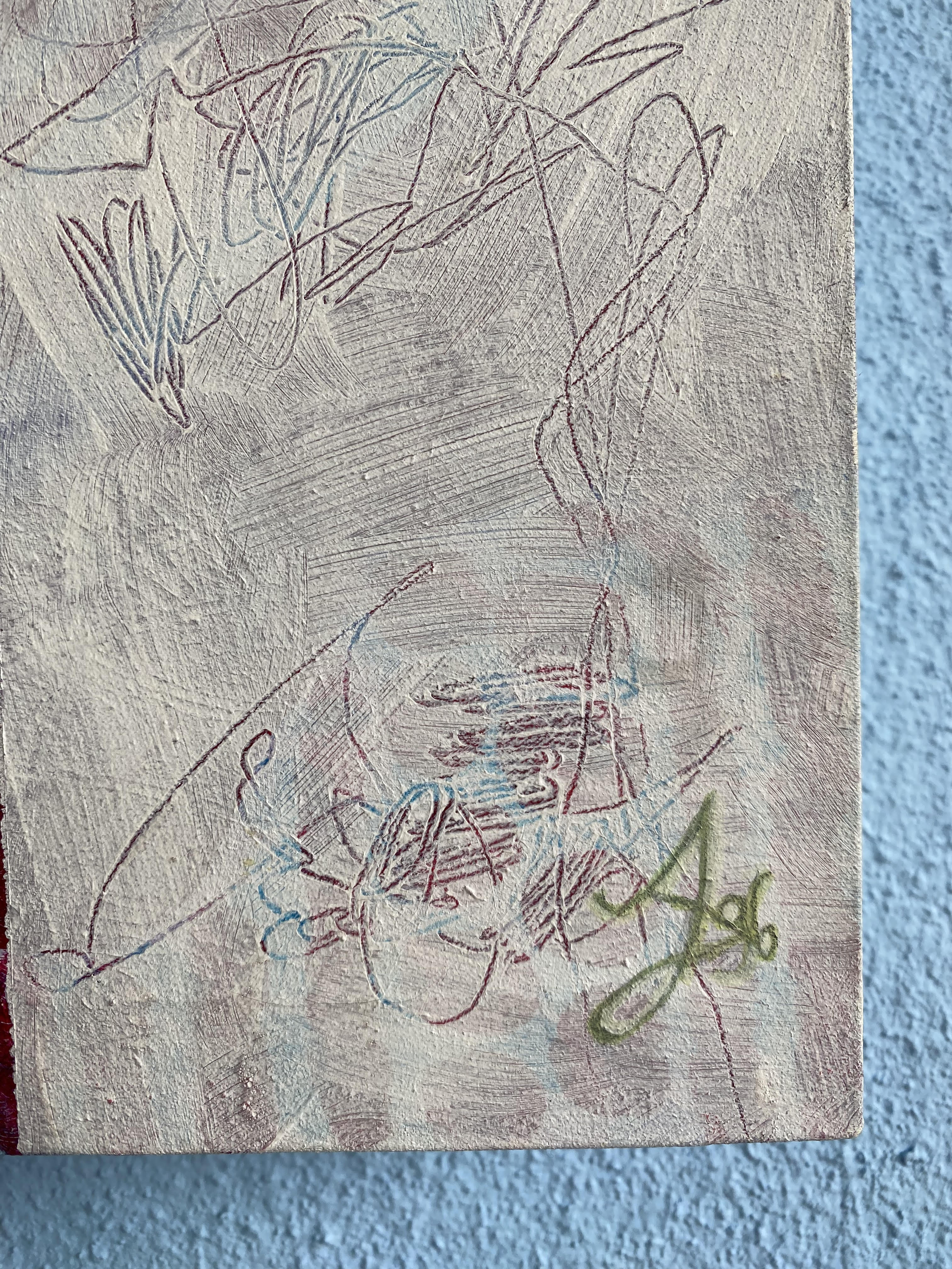 Janle, Annette (1960 Stuttgart – 2016 Tübingen): ‚o. T.‘ : unten rechts signiert, datiert : Acryl auf Leinwand auf Holzrahmen gespannt : Tübingen, 1996. 100 x 79 cm, 1980–1984 Studium Sozialpädagogik, 1994–1996 Kunstseminar Freie Hochschule Metzingen, Offener Studienbereich.– seit 1996 freischaffende Künstlerin.– seit 2002 freie Lehrtätigkeit.– 2014 Artist in Residence Hrisey/Island.– Mitglied im Verband Bildender Künstler Württemberg (VBKW) und im Künstlerbund Tübingen.– Atelier in Tübingen.– frühzeitiger Tod 2016.–