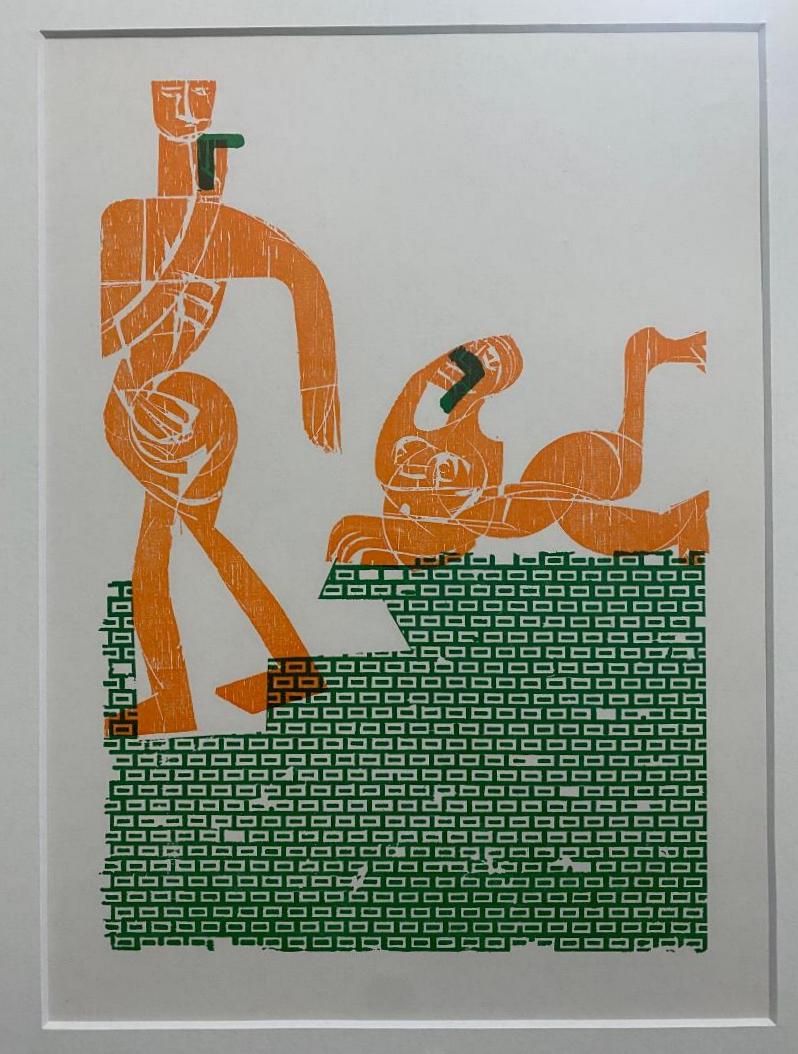 Grieshaber, HAP (1909 Rot a.d. Rot – 1981 Eningen unter Achalm). – ‚Gehender von Sphinx‘ : Holzschnitt grün, orange : aus dem Zyklus ‚Grob, fein & göttlich‘. Bramsche, Gebr. Rasch & Co (Druck), 1970. 28.5 x 19.5 (Holzschnittgröße), unter Passepartout montiert, *Fürst 69/53 unsigniert *** WAHLWEISE WOHNFERTIG GERAHMT +EUR 40,00 ***