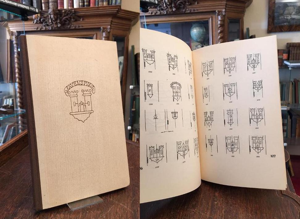 Ravensburg. – Sporhan-Krempel, Lore: Ochsenkopf und Doppelturm. Die Geschichte der Papiermacherei in Ravensburg. Ravensburg, Selbstverlag / Stuttgart, Stähle & Friedel [Druck], (1952). 4° (25x16), 2 Bl, 120 S., mit zahlr. montierten Abb., OHln, 1. Blatt mit kleinem Datumseintrag, sonst ohne Gebrauchsspuren, offensichtlich ungelesen,
