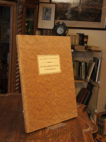 Weingarten. – Schlegel, Arthur: Die Benediktiner-Kirche zu Weingarten. Weingarten, Verlag Konrad Bauer, 1924. gr8° (25.5x19.5), 34, (2) S., mit 3 Textbildern und 39 fotograf Aufnahmen auf 32 Tafeln, brauner OPbd mit D/RSchild, etwas angestaubt, fest sauber und gepflegt,