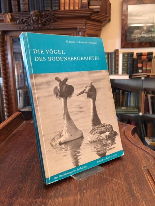 Jacoby, Harald / Knötzsch, Gerhrd / Schuster, Siegfried (Hrsg): Die Vögel des Bodenseegebietes. Herausgegeben von der Ornithologischen Arbeitsgemeinschaft Bodensee. Ostermundingen, Fritz Marti [Druck], 1970. 8° (23x15), 260 S., mit 28 fotograf Aufnahmen auf 16 Tafeln und zahlr. Kartenskizzen im Text, OKart (Brosch), ohne Gebrauchsspuren, offensichtlich ungelesen, [= Der Ornithologische Beobachter; Beiheft zu Band 67], Artenliste enthält 313 Einträge.–
