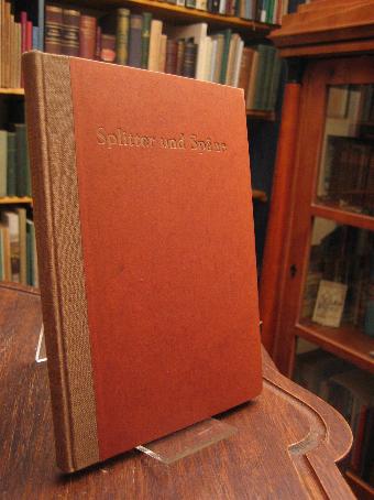 Lauterwein, Max: Splitter und Späne. [Aus dem Nachlass herausgegeben von J.Forderer]. Ulm, Selbstverlag von Luise Lauterwein, 1928. 8°, 130 S., PorträtFrontispiz, OHln mit goldTitel, minimal angestaubt, ohne Gebrauchsspuren, Max Lauterwein (1864-1926)