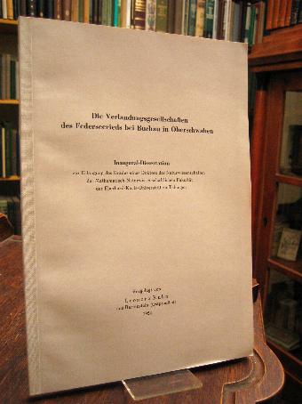 Buchau, Bad. – Kuhn, Leonore: Die Verlandungsgesellschaften des Federseerieds bei Buchau in Oberschwaben. Inaugural-Dissertation Mathematisch-Naturwissenschaftliche Fakultät der EK-Universität zu Tübingen. (Tübingen), o.V., 1954. gr8° (24.5x17), 68 S., mit 34 teils fotograf Abb., einigen gefalteten Tabellen und 1 farb Karte, OKart (Brosch mit LnR), ohne Gebrauchsspuren, offensichtlich ungelesen,