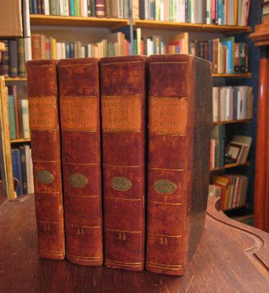 Bibel. – NT. – Schnappinger, Bonifaz Martin: Die heilige Schrift des Neuen Bundes mit vollständig erklärenden Anmerkungen. 3., abermals verbesserte Original-Aufl., 4 Bände in 4 [so komplett], Mannheim, Verlag bei Tobias Löffler / Kommisson: Linz, bei Cajetan Haßlinger, 1817-18. 8° (19x12), XVI,520; 710; 727; 660 S., einheitl dekorative HLdrbde d.Zt. mit 2 farb RSchildern, die Ecken teils etwas bestossen, Band 1 Vorsatz mit kleinem Eckabschnitt, mont Besitzvermerk auf Innenspiegel, Stempel auf Titelblatt, gepflegte saubere Exemplare, [Schildenberger, Die Bibel in Deutschland 280f; vgl. Vegelahn, Bibel-Archiv].— Bonifaz Martin Schnappinger (1762-1832) trat 1782 in den Karmeliterorden ein, verließ später gleichzeitig mit Dereser den Orden und lehrte in Heidelberg als Professor für Dogmatik und Exegese, ab 1807 in Freiburg.— seine Bibelübersetzng erschien erstmalig 1797-99 in drei Bänden (dort als Autor noch Bonifacius vom heil. Wunibald, Priester des Ordens der barfüssigen Karmeliten) bei Tobias Löffler in Mannheim.– Wohl bei Buchberger im LThKG als frühe Übersetzung verzeichnet, ist die Ausgabe von Schnappinger kaum mehr zu finden.–