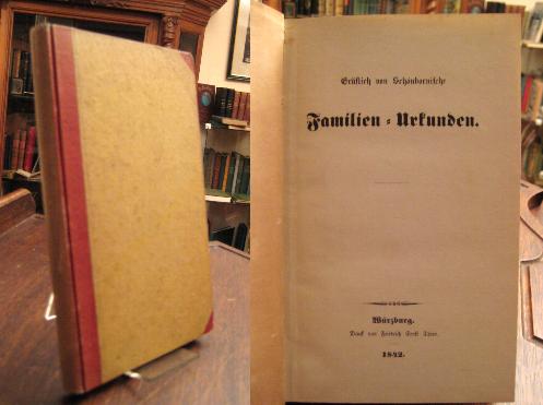Schönborn: Gräflich von Schönbornische Familien-Urkunden. Würzburg, Druck von Friedrich Ernst Thein, 1842. 8° (21x13), 2 Bl., 176 S., Pbd d.Zt., Ecken etwas bestossen, fest sauber und gepflegt, (Gräflich von Schönbornische Familienurkunden)