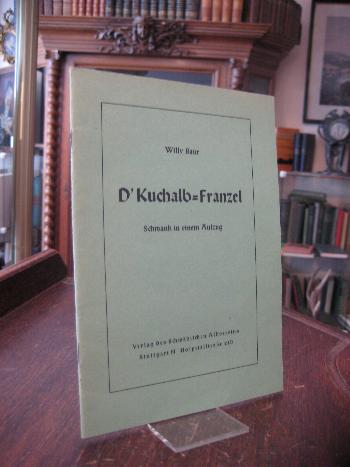 Baur, Willy: D’Kuchalb-Franzel : Schwank in einem Aufzug. Stuttgart, Verlag des Schwaäbischen Albvereins Hospitalstr. 21B, [um 1950]. 8° (21x15), 20 S., OKart (Brosch), fest sauber und gepflegt, aInnenspiegel handschriftliche Verfasserzugeignung: ‚Herrn u. Frau … mit herzlichem Gruß! / 6.II.53 / Willy Baur‘.–