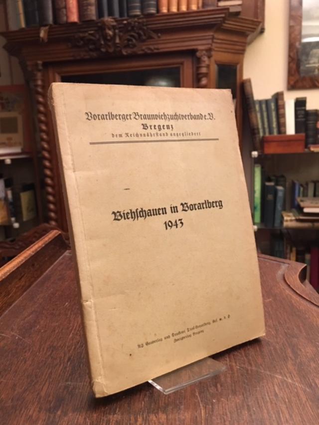 Vorarlberger Braunviehzuchtverband e.V. Bregenz, dem Reichsnährstand angegliedert: Viehschauen in Vorarlberg 1943. (Erster Teil: Stiere (Frühjahrsschauen).– Zweiter Teil: Kühe, Kalbinnen, Rinder (Herstschauen)). Bregenz, NS Gauverlag und Druckerei Tirol-Vorarlbert Zweigstelle Bregenz, 1943. 8° (21x15), 176 S., OKart (Brosch), Kapitale etwas verletzt, sonst fest sauber und gepflegt,
