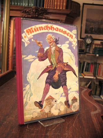 Bürger, Gottfried August / Beck, Wilhelm von (Bearb): Die wundersamen Fahrten und Abenteuer des Freiherrn von Münchhausen auf zu Bodenwerder. Nach der Ausgabe Gottfried August Bürgers neu bearbeitet von Wilhelm von Beck. Berlin, A. Weichert Verlag, [um 1930]. 8° (18x12), 88 S., mit farb Frontispiz und einigen Textillustrationen, farb ill OHln, Titelblatt braunschattig, sonst fest sauber und gepflegt, Titelbild von J. Lehmann-Bertrand.–