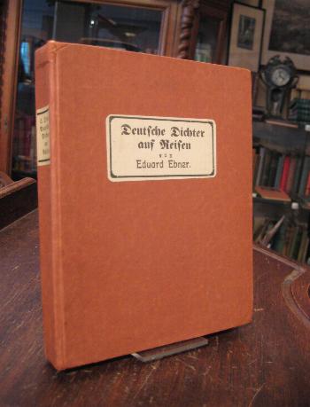 Ebner, Eduard: Deutsche Dichter auf Reisen. Mit sechs Bildern nach Zeichnungen von Goethe, Chamisso und Scheffel. Nürnberg, Karl Koch’s Verlag, [1913]. 8° (18x15), VII, 252 S., mit 6 Tafeln, OPbd mit mont TitelSchild, Titelei schwach stockfleckig, sonst fest sauber und gepflegt, enthält: Einleitung.– Goethe in der Schweiz und in Italien.– Chamissos Weltreise.– Heines Reisebilder und Reiselyrik.– Lenau in Amerika.– Hebbel auf Reisen.– Scheffel auf Reisen.— mit Verzeichnissen der Belegstellen und erwähnten Dichter.–