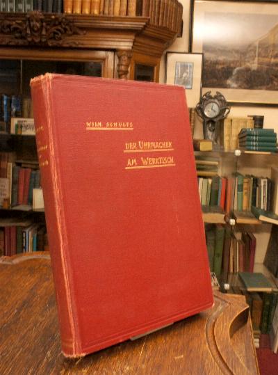 Schultz, Wilhelm: Der Uhrmacher am Werktisch : Hand- und Nachschlagebuch für den Taschenuhren-Reparateur. (1. Aufl.), Berlin, Verlag der Deutschen Uhrmacher-Zeitung Carl Marfels, 1902. gr8° (24x16), VIII, 335 S., mit 232 Original-Holzschnitten im Text und auf 5 gefalteten Tafeln (so komplett), roter Oln gewachst mit goldTitel, Kapitale etwas bestossen, kleiner Name auf Titelblatt, die ersten 4 Bl. stockfleckig, vereinzelt etwas fleckig, ordentliches Exemplar,