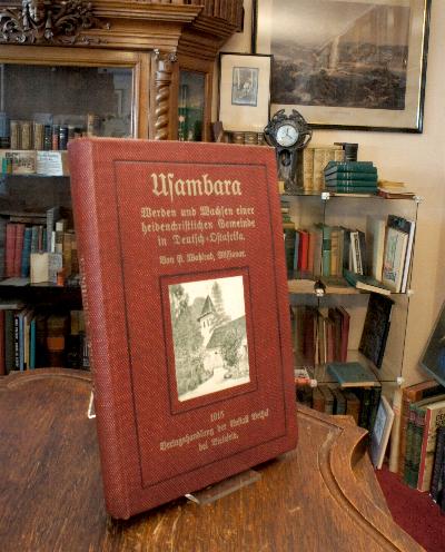 Wohlrab, [Paul]: Usambara : Werden und Wachsen einer heidenchristlichen Gemeinde in Deutsch-Ostafrika. Bielefeld, Verlagshandlung der Anstalt Bethel, 1915. 8° (22x14), VIII, 234 S., mit zahlr. TextAbb. und 2 gefalteten Karten, Oln mit mont Deckelbild, goldTitel, fest sauber und gepflegt, [Kainbacher 2002/3ed, 458].–