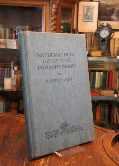 Weighardt, [Elgar]: Mathematische Geographie und Astronomie : für die Oberprima der Realanstalten (und für Studierende zur Einführung) in geschichtlicher Entwicklung. München-Berlin, Verlag von R. Oldenbourg, 1924. 8° (22x14), IX, 127 S., mit 70 fotograf Aufnahmen und graph. Darst., OHln, Deckel mit schwachem Knick, teils mit radierbaren Bleistiftunterstreichungen, ordentliches festes Exemplar,
