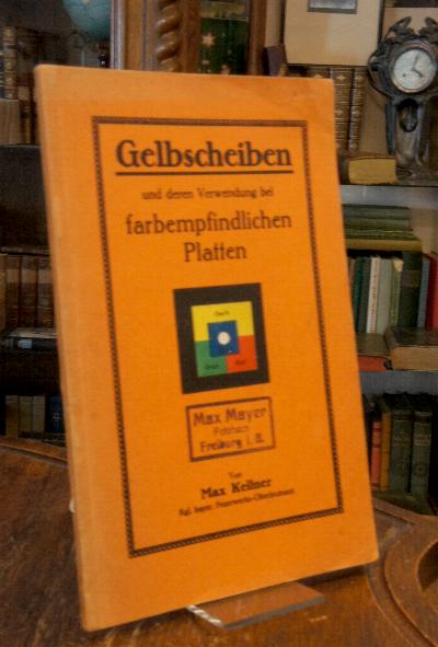 Kellner, Max: Gelbscheiben und deren Verwendung bei farbempfindlichen Platten. Augsburg, Verlag von Konrad Sill, (1914). 8° (22x14), 64, (4) S., mit 23 Figuren und 6 Bildern, OKart (Brosch), gutes sauberes Exemplar, [Heidtmann (1989/2) 05113].– Kgl. bayer. Feuerwerks-Oberleutnant.– mit Verlagsbeilage und Gelbscheiben-Karte.–