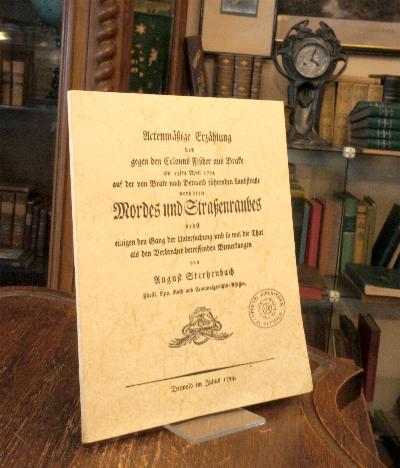 Stertzenbach, August: Actenmäßige Erzählung des gegen den Colonus Fischer aus Brake am 15ten April 1794 auf der von Brake nach Detmold führenden Landstraße verübten Mordes und Straßenraubes nebst einigen den Gang der Untersuchung und so wol die That als den Verbrecher betreffenden Bemerkungen. FAKSIMILE der Ausgabe Detmold, 1794. Detmold, Selbstverlag der Lippischen Landesbibliothek, 1979. 8°(19x15), 42 S. + 9 S. Nachwort, OKart (Brosch), fest sauber und gepflegt, [= Kleine Faksimiles aus der Lippischen Landesbibliothek Detmold; 3],