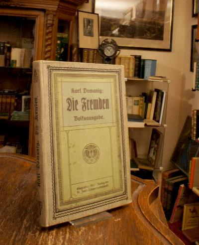 Domanig, Karl: Die Fremden : Ein Roman aus der Gegenwart : Volksausgabe. 3., verbesserte Aufl., Klagenfurt, Verlag der St. Josefbücherbruderschaft, 1911. 8° (19x12), 214 S., Oln mit mont Titelschild, gering gealtert, fest und sauber, Carl Domanig (1851-1913) Tiroler Heimatdichter.–