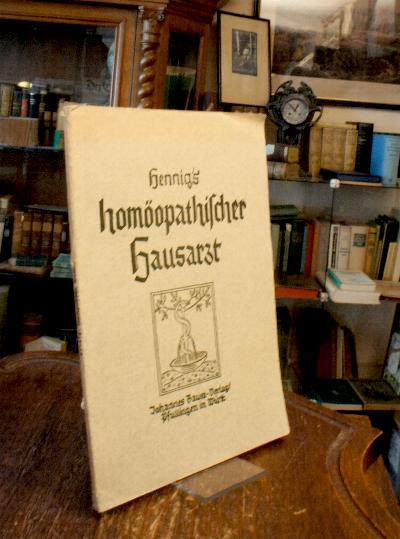 Hennig, Max E.: Homöopathischer Hausarzt : Nach 30järhrigen Erfahrungen am Krankenbett und in der Praxis. Ein treuer Ratgeber in akuten und chronischen Erkrankungsfällen für die Familie, besonders auf dem Lande, sowie für Missionare, mit leicht faßlichen Anweisungen, die es ermöglichen, schnelle Hilfe zu leisten. Pfullingen, Johannes Baum Verlag, [1930]. gr8° (23x15), 82 S., OKart (Brosch), Rücken minimal verletzt, gutes Exemplar, [= Bücher der ‚Weissen Fahne‘; 59],