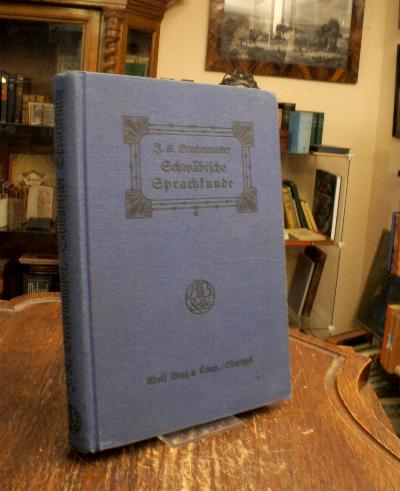 Brechenmacher, Josef Karlmann: Schwäbische Sprachkunde in ausgeführten Lehrbeispielen. Versuch einer bodenständigen Grundlegung des schaffenden Deutschunterrichts. Stuttgart, Verlag von Adolf Bonz & Comp, 1925. 8° (21x14), XI, 256 S., blauer Oln, untKapital an der hinteren Kante minimal verletzt, Besitzvermerk auf Zwischentitelblatt, kleiner Namensstempel auf Titel, gutes gepflegtes Exemplar,