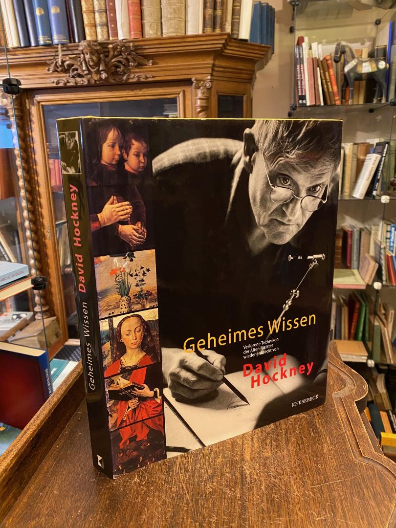 Hockney, David: Geheimes Wissen : Verlorene Techniken der Alten Meister wieder entdeckt. Aus dem Englischen (Secret Knowledge : Rediscovering the lost techniques of the Old Masters; London, 2001) von Bernadette Ott und Rita Seuß. DEA, München, Knesebeck, 2001. 4° (31x24), 296 S., OPbd mit ill OU, nahezu ungelesen, schönes gepflegtes Exemplar, David Hockney, einst Mitbegründer der Pop Art und einer der bedeutendsten und beliebtesten zeitgenössischen Maler, hat die großen Meisterwerke der Kunstgeschichte unter die Lupe genommen. Dabei hat er eine erstaunliche Entdeckung gemacht, die kein Zufall ist: Anfang des 15. Jahrhunderts, in einer relativ überschaubaren Zeitspanne bekommen die Gemälde plötzlich eine Präzision und Lebendigkeit, die einem Qualitätssprung gleichkommt. Diese Entdeckung, von der Zunft der Kunsthistoriker bis heute nicht kommentiert, ließ ihm keine Ruhe mehr. Er begann, eine Vielzahl von Bildern systematisch zu untersuchen und diskutierte seine Beobachtungen bald in einem ausgedehnten Briefwechsel mit seinem englischen Freund und Fachmann Martin Kemp sowie mit anderen internationalen Experten aus Kunst und Naturwissenschaft. Seine Aufsehen erregende These: Die Künstler hatten sich beim Malen nicht allein auf ihr Auge verlassen, sondern optische Hilfsmittel eingesetzt. Maler wie Leonardo, van Eyck, Holbein, Caravaggio, Velasquez und später auch Ingres verwendeten Spiegel, Prismen und Linsen, die ihnen neue Möglichkeiten der Darstellungen der Wirklichkeit boten. Es bedurfte eines ‚Handwerkers‘ wie Hockney, um die Kunsthistoriker mit dieser These zu konfrontieren. Anhand von umfangreichem, brillantem Bildmaterial, eigenen Skizzen und einem höchst erhellenden Briefwechsel werden Entwicklungen dargestellt und Argumente ausgetauscht. Der Leser wird so in eine der interessantesten kunsthistorischen Debatten unserer Zeit hineingezogen, die ihn in Zukunft die Alten Meister mit neuem Vergnügen betrachten lässt. Hockney schlägt darüber hinaus den Bogen in die Gegenwart, hinterfragt die Möglichkeit im Computerzeitalter und gibt Impulse für das moderne Kunstschaffen. (Verlag)