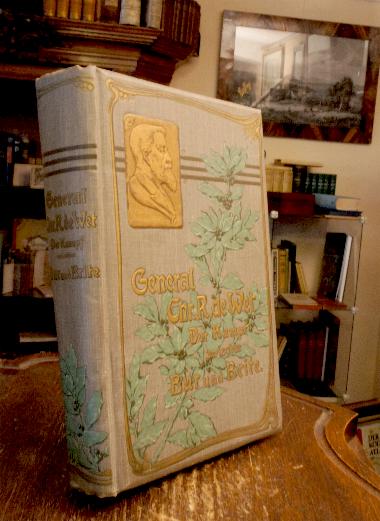 Wet, [Christiaan Rudolf] de Der Kampf zwischen Bur und Brite : (Der dreijährige Krieg). Deutsche Original-Ausgabe. Kattowitz-Leipzig, Carl Siwinna, [1903]. 4° (25x17), XX, 454 S., mit VerfasserPorträt, fotograf Tafeln, KartenSkizzen, grauer Oln gewachst mit farb MistelPräg, goldTitel, goldPorträtMedaillon, dreiseitiger RotSchnitt, lithSchmuckVorsätze, Papier leicht gebräunt, nahezu ungelesen, fest sauber und gepflegt,
