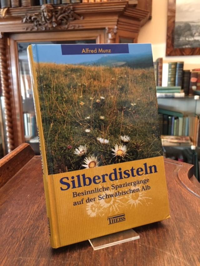 Munz, Alfred: Silberdisteln : Besinnliche Spaziergänge auf der Schwäbischen Alb. (Mit Illustrationen von Eduard Niethammer). Stuttgart, Konrad Theiss Verlag, 1999. 8° (20x13), 143 S., mit einigen Illustrationen, fotoill OPbd, nahezu ungelesen, schönes gepflegtes Exemplar,