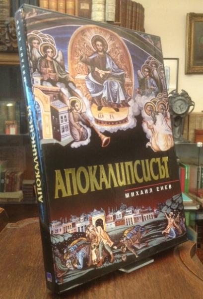 Enev, Mihail: The Apocalypse by Saint John the Theologian in the frescoes, icons and miniatures of the Christian churches. With the assistance of the European Centre for Education and Training. [written and compiled by] Mihail Enev. Sofia, Balkan Publishing Company, 1996. 4° (32x23), 223 p., 78 pages of plates, chiefly illustrations, publisher’s pictorial hardbound in pictorial slipcase, tight and clean, well cared, BULGARIAN KYRILLIC EDITION