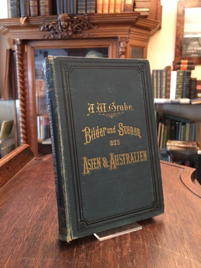 Grube, [August] W.: Bilder und Scenen aus Asien und Australien : Nach vorzüglichen Reisebeschreibungen für die Jugend ausgewählt und bearbeitet. 7., vermehrte und verbesserte Aufl., Stuttgart, Verlag von J.F. Steinkopf, 1888. 8° (19x12), 328 S., mit illustriertem Vortitelblatt und vereinzelten Illustrationen in Holzstich, grüner Oln (Kaliko) mit goldTitel auf Deckel und Rücken, Ecken/Kanten berieben, Gelenke gering gelockert, militärische Schulpreiswidmung 1891/92 auf Innenspiegel, anfangs etwas fingerfleckig, ordentliches Exemplar, [= Bilder und Scenen aus dem Natur- und Menschenleben in den fünf Hauptteilen der Erde : Eine Festgabe in vier Teilen; Band 1],