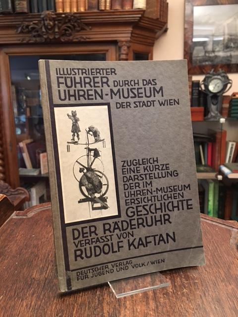 Kaftan, Rudolf: Illustrierter Führer durch das Uhren-Museum der Stadt Wien, zugleich eine kurze Darstellung der im Uhren-Museum ersichtlichen Geschichte der Räderuhr. Wien, Deutscher Verlag für Jugend und Volk, 1929. 8° (20x14), 112 S., mit 88 Abb., OKart (Brosch) mit mont Deckelbild, Rücken mit kleiner Fehlstelle, Deckel mit Knickspuren, sonst gutes sauberes Exemplar,