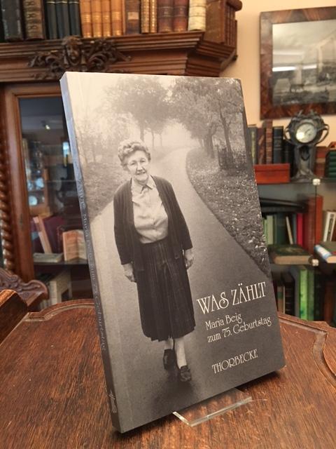 Beig, Maria (1920-2018). – Burger, Oswald (Hrsg): Was zählt : Maria Beig zum 75. Geburtstag. Sigmaringen, Jan Thorbecke Verlag, 1995. 8° (23x14), 136 S., mit 4 fotograf Aufnahmen, OKart (KlappenBrosch), minimal berieben, nahezu ungelesen, schönes gepflegtes Exemplar,