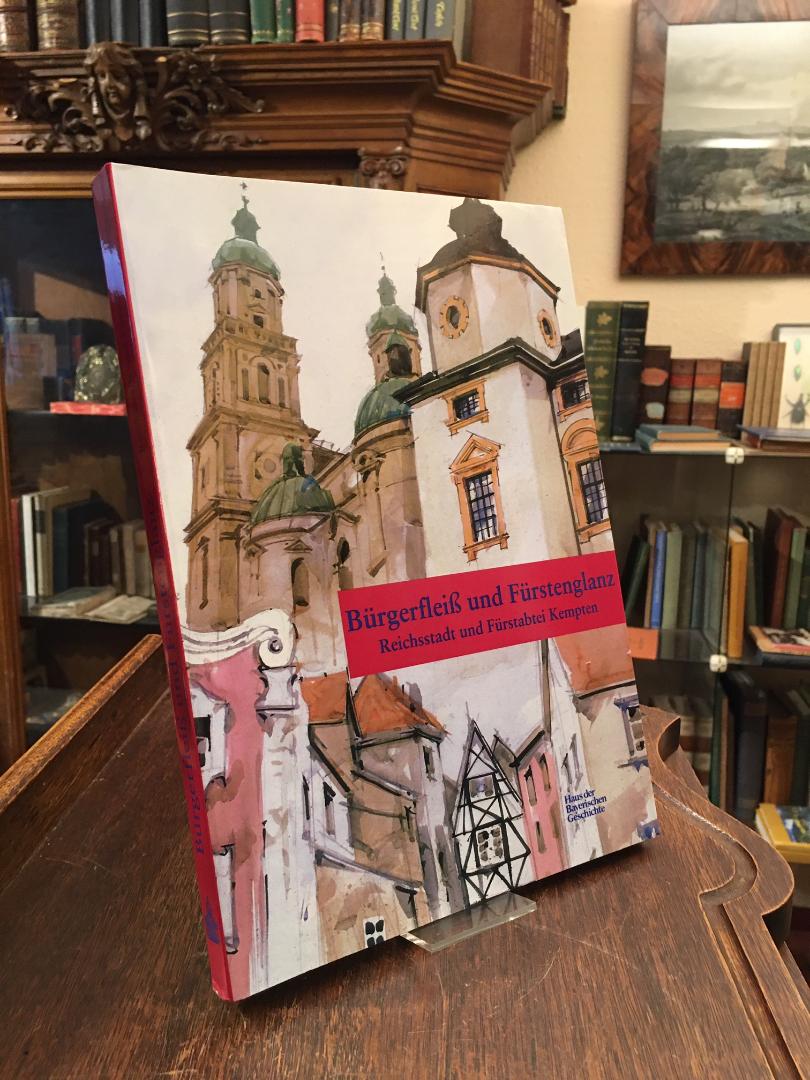 Jahn, Wolfgang / Kirmeier, Josef / Petz, Wolfgang / Brockhoff, Evamaria (Hrsg): ‚Bürgerfleiß und Fürstenglanz‘ : Reichsstadt und Fürstabtei Kempten. (Katalog zur Ausstellung in der Kemptener Residenz, 16. Juni bis 8. November 1998). München, Haus der Bayerischen Geschichte, 1998. 4° (30x21), 301 S., reich illustriert, OKart (KlappenBrosch), ohne Gebrauchsspuren, offensichtlich ungelesen, frisch, [= Veröffentlichungen zur Bayerischen Geschichte und Kultur; 37/98], enthält folgende Aufsätze: Peter Blickle: Persönliche Freiheit und politische Macht – Der Herrschaftsvertrag zwischen den Untertanen und dem Abt des Stiftes Kempten von 1526 als Verfassung.– Wolfgang Petz: Zwischen Beharrung und Wandel – Die Reichsstadt Kempten in der frühen Neuzeit.– Herbert Immenkötter: Adelsprivileg und exemtion gegen Benediktinertum und Tridentinum – Zum Selbstverständnis kemptischer Stiftsherren in der frühen Neuzeit.– Albrecht Miller: Die Prunkräume der Residenz Kempten.–