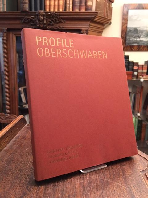 Dahinten, Gunther / Kapitel, Thomas / Riedel, Johannes (alle Text/Foto): Profile Oberschwaben. Herausgegeben von Hildegard Diederich. 1. Aufl., Biberach, BVD Biberacher Verlagsdruckerei, 2004. 4° (26x21), 220 S., mit fotograf Porträtaufnahmen, OPbd mit OU, ohne Gebrauchsspuren, offensichtlich ungelesen, Kurzprofile von mehr als 50 Personen aus allen Lebensbereichen (Jürgen Hohl, Rupert Leser etc) überwiegend aus dem Kreis Biberach, sowie aus den Kreisen Bad Saulgau und Bad Waldsee.–