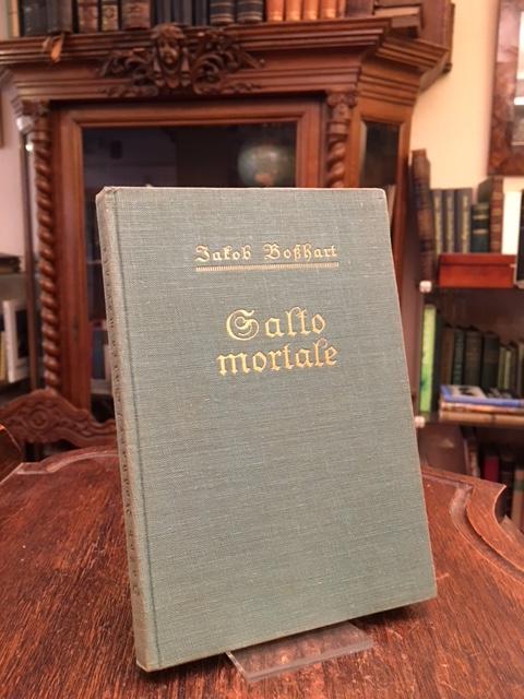 Bosshart, Jakob: Salto mortale. 4. Aufl., Stuttgart, Fleischhauer & Spohn Verlag, [um 1920]. 8° (18x12), 101 S., grüner Oln mit goldTitel, Schnitt etwas braunfleckig, sonst fest sauber und gepflegt, [= Kristall-Bücher : eine Novellenreihe : herausgegeben von Manfred Schneider],
