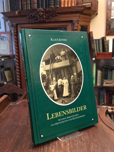 Jonski, Klaus: Lebensbilder : Aus dem Arbeitsleben von Dienstboten und Handwerkern. Geleitwort von Kurt Diemer. 1. Aufl., Biberach, BVD Biberacher Verlagsdruckerei, 1996. gr8° (23x16), 200 S., mit zahlr. fotograf Aufnahmen und Faksimiles, fotoill OPbd, gering berieben, fest und sauber, enthält: Franziska Ege (Mittelbiberach): Als Schneiderin auf Stör.– Lorenz Brunner (Winterstettenstadt): Aus dem Leben eines Roßknechts.– Agathe Popp, geb. Heller (Gutenzell): Zurück zum Kaffee.– Paula Erath geb. Böhm (Mettenberg): Als Zimmermädchen im Jordanbad.– Franziska Federolf geb. Löffelhardt (Mittelbiberach): „Dir gib i Degerloch“ – eine Liebesgeschichte.– Klara Auer geb. Erath (Mettenberg): „Ma isch it so fei umganga mit oim“.– Anton Restle (Eichen): Lehr- und Gesellenjahre eines Flaschners.– Elisabeth Moll geb. Schleicher (Mittelbiberach): Eine ‚Perle‘ berichtet aus ihrem Leben.– Luise Ott geb. Ries (Mittelbiberach): Maggi-Suppen und Gaisburger Marsch.– Alois Stark (Reute):″Da bin ich erst ein richtiger Kaminfeger geworden“.– Ottilie Gnandt (Mühlhausen): „9 Jahre und schon Kleinmagd“.–