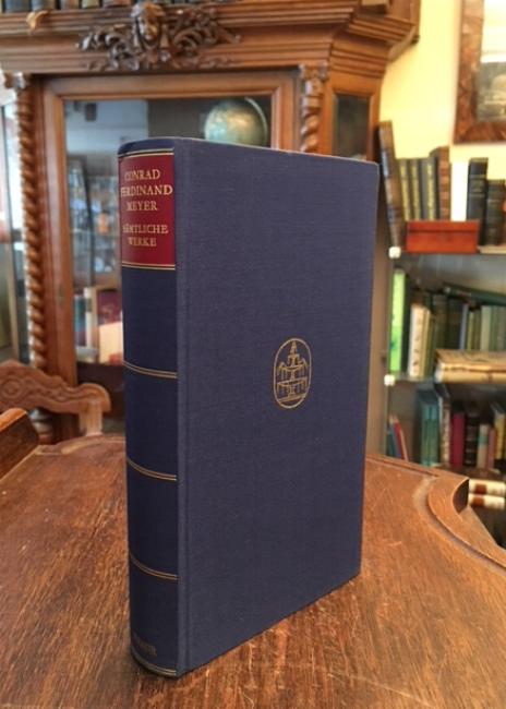 Meyer, Conrad Ferdinand (1825-1898). – Schmeer, Hans (Nachwort): Conrad Ferdinand Meyer : Sämtliche Werke. München; Zürich, Droemer’sche Verlagsanstalt Th. Knaur Nachf, (1961). 8° (20x12), 1086 S., Persia-Dünndruckpapier, blauer Oln mit OU, Umschlag liegt gefaltet bei, gutes Exemplar, [= Knaur Klassiker],