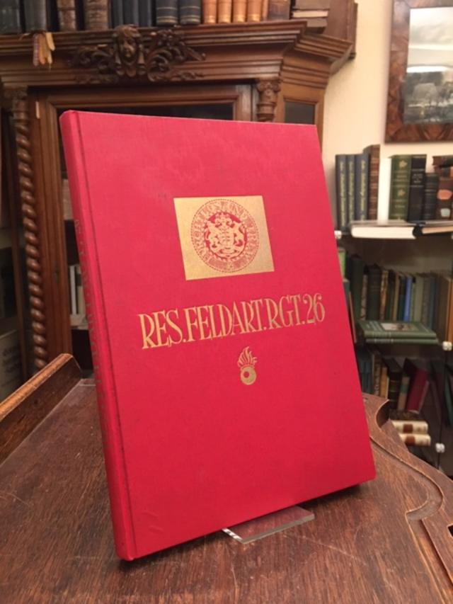 Klaus, Max (Bearb): Das Württembergische Reserve-Feldartillerie-Regiment Nr. 26 im Weltkrieg 1914 – 1918. Stuttgart, Chr. Belser Verlagsbuchhandlung, 1929. 4° (26x18), VII, 140 S., mit 92 dokumentarischen Aufnahmen, 7 Kartenskizzen (Gefechtsskizzen) im Text sowie 20 weitere auf gefalteter Beilage in Deckelschlaufe [so komplett], roter Oln (Moiree) mit goldPrägung, ohne Gebrauchsspuren, offensichtlich ungenutzt, [= Die württembergischen Regimenter im Weltkrieg 1914-1918; 45 : herausgegeben von H. Flaischlen],