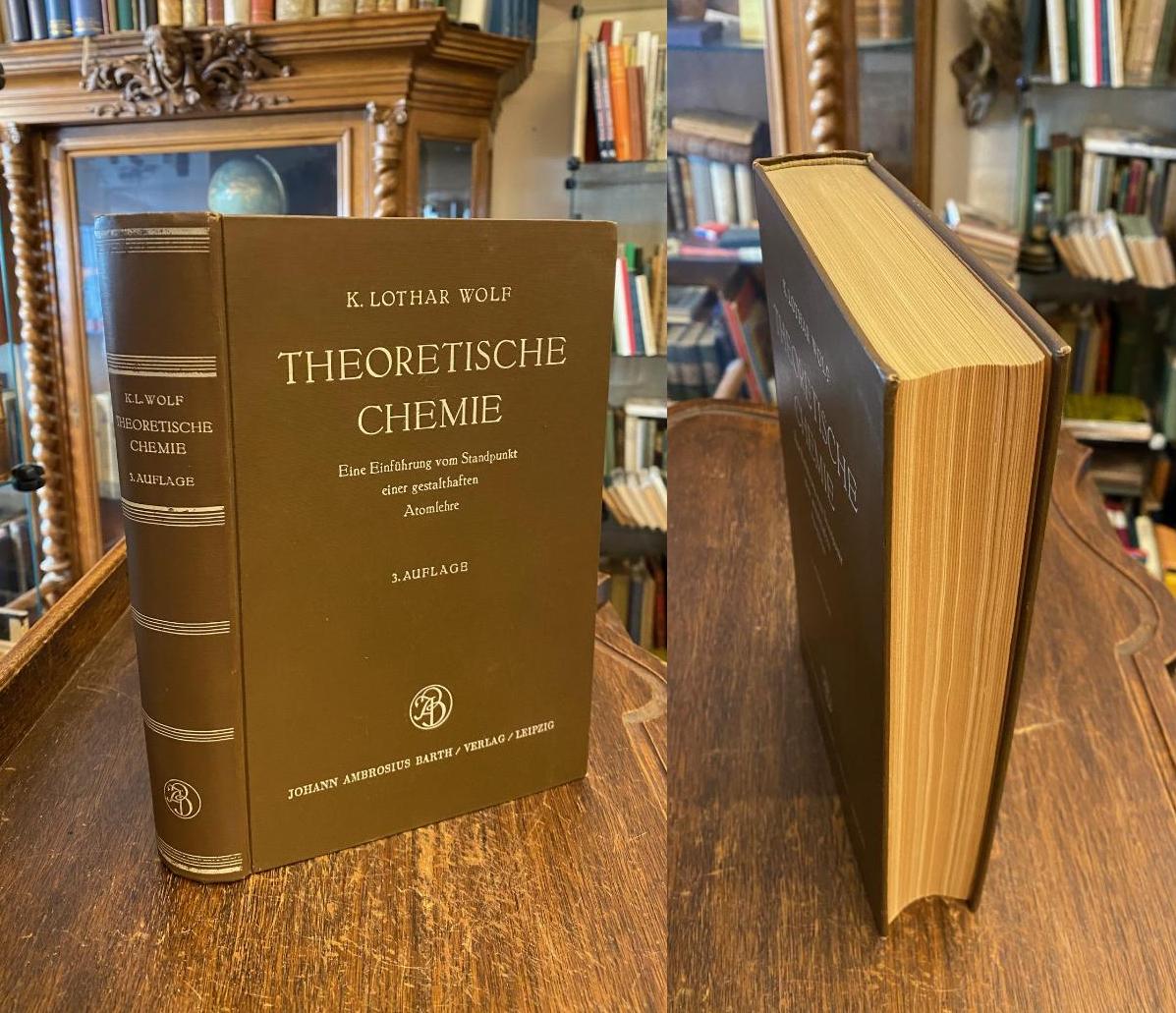 Wolf, K. Lothar: Theoretische Chemie : Eine Einführung vom Standpunkt einer gestalthaften Atomlehre. 3., umgearbeitete Aufl., Leipzig, Johann Ambrosius Barth, 1954. gr8° (24x16, XII, 742 S., 1 Bl., brauner Oln mit weisser TitelPrägung, Papier lagenweise etwas gebräunt, kaum genutzt, sauber und wohlerhalten,
