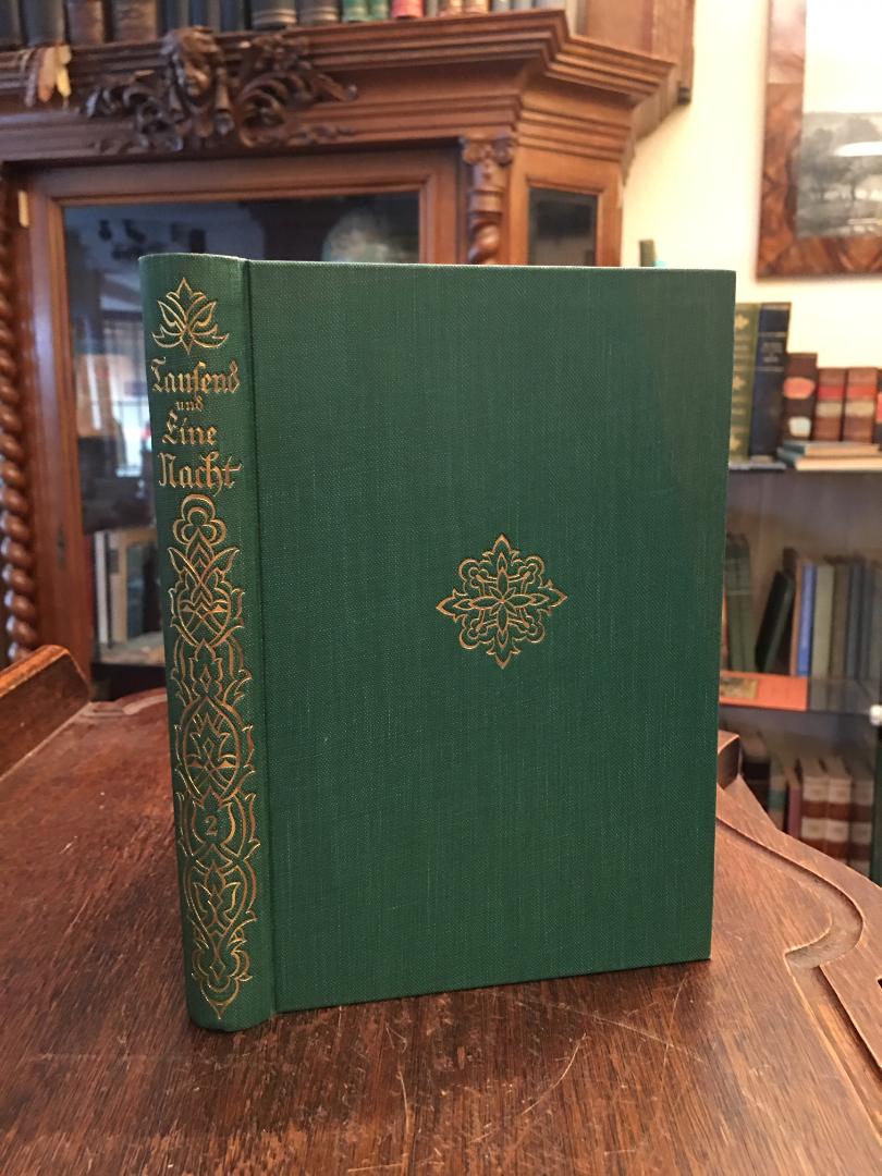 Tausendundeine Nacht. – Schiller, Karl Martin (Hrsg): Tausend und Eine Nacht : Arabische Erzählungen [in zwölf Bänden] : HIER NUR: Zweiter Band. Deutsch von Max Habicht, Fr. H. von der Hagen und Carl Schall. Band 2 von 12, Leipzig, F. W. Hendel Verlag, 1926. 8° (19x13), 318 S., mit illustriertem Titelblatt, grüner Oln gewachst mit reicher goldRückenPrägung, Deckelmedaillon, ohne Gebrauchsspuren, sehr schön, [= Tausend und Eine Nacht : Arabische Erzählungen [in zwölf Bänden]; BAND 2],