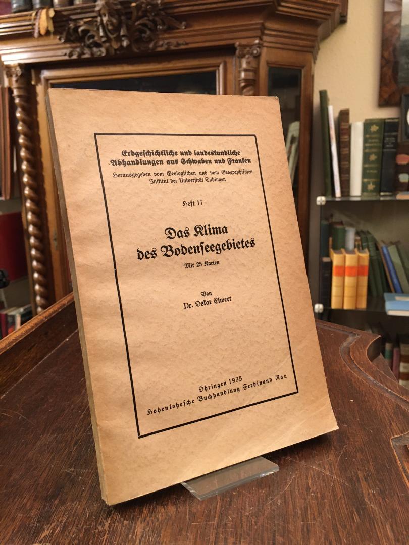 Elwert, Oskar: Das Klima des Bodenseegebietes. Öhringen, Hohenlohe’sche Buchhandlugn Ferdinand Rau, 1935. 8° (22x15), 170 S., mit 25 Karten, OKart (Brosch), fest sauber und gepflegt, [= =Erdgeschichtliche und landeskundliche Abhandlungen aus Schwaben und Franken; 17 : herausgegeben vom Geologischen und vom Geographischen Institut der Universität Tübingen],