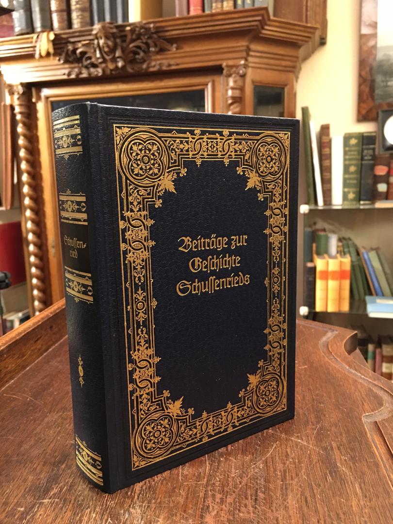 Schussenried, Bad. – Beck, Paul/ Ruess, Bernhard: Beiträge zur Geschichte Schussenrieds. Bad Buchau, Federsee-Verlag, (1981). 8° (21x14), 720 S., mit umfangreichem Bildmaterial, blauer OKldr mit reicher goldPräg, fest sauber und gepflegt, Zusammenfassende Übersicht über die Geschichte von Schussenried, enthaltend die wichtigen Veröffentlichungen von Bernhard Rueß und Paul Beck, ergänzt durch einen Bildteil und eine Schussenried-Bibliographie vom derzeitigen Stadtchronisten Karl Kaufmann.–