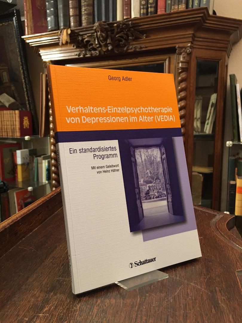 Adler, Georg: Verhaltens-Einzelpsychotherapie von Depressionen im Alter (VEDIA) : Ein standardisiertes Programm. Unter Mitarbeit von Jochen Stien, Martin Teufel, Katrin Chwalek. Mit einem Geleitwort von Heinz Häfner. Stuttgart, Schattauer, 2005. gr8° (24x16), XII, 155 S., OKart (LinsonBrosch), Name auf Innenspiegel, sonst ohne Gebrauchsspuren, offensichtlich ungelesen,