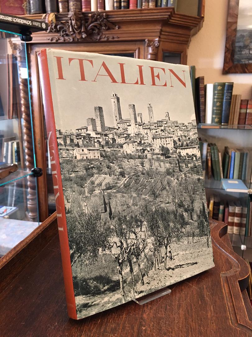 Hürlimann, Paul [Aufnahmen]: Italien : Bilder seiner Landschaft und Kultur. 2. Aufl., Zürich, Atlantis Verlag, 1954. 4° (31x22), 216 S., mit 225 fotograf Aufnahmen auf 176 TiefdruckTafeln sowie 1 Karte, Oln mit goldPräg mit fotograf OU, nahezu ungelesen, schönes gepflegtes Exemplar, [= Orbis Terrarum], –