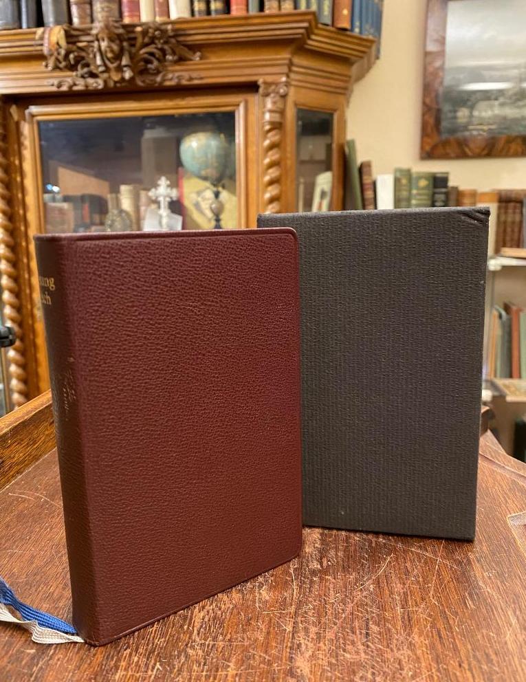 Evangelisches Kirchengesangbuch : Ausgabe für die Evangelische Landeskirche in Württemberg. 21., neu durchgesehene Auflage der Ausgabe von 1953, imj Druckbild verändert, Stuttgart, Verlag des Evangelischen Gesangbuchs, 1971. kl8° (15x10), [746], 421 S., mit Melodien, brauner OLdr mit goldRTitel, dreiseitiger GoldSchnitt, 2 Lesebändchen, im Schuber nahezu ungelesen, schönes gepflegtes Exemplar,