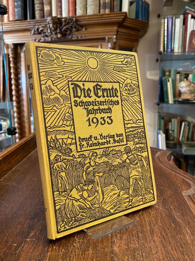 Garbe-Schriftleitung (Hrsg): Die Ernte : Schweizerisches Jahrbuch 1933 : 14. Jahrgang. Basel, Verlag von Friedrich Reinhardt, (1932). 8° (20x14), 201 S., mit zahlr. Textillustrationen und teils farb Tafeln, einige Werbeblätter, gelber Oln mit geprägter Illustration, SchmuckVorsätze, nahezu ungelesen, schönes gepflegtes Exemplar,