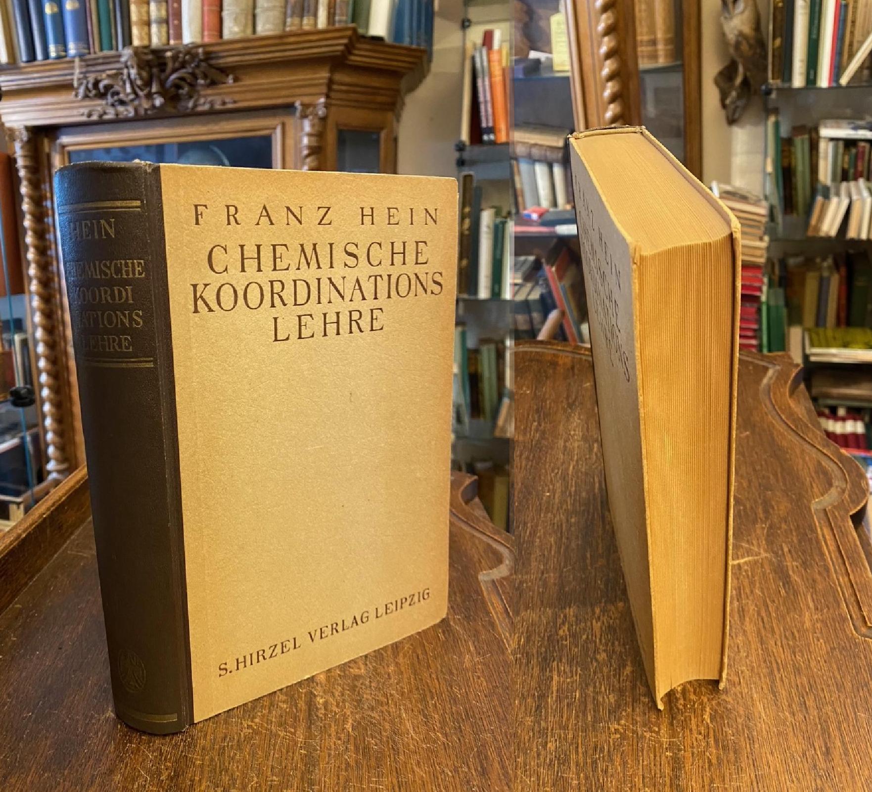 Hein, Franz: Chemische Koordinationslehre. Leipzig, S. Hirzel Verlag, 1950. gr8° (24x17), XVII, 683 S., Oln mit TitelPrägung, Name auf Titelblatt, Papier gebräunt, mit vereinzelten dünnen radierbaren Markierungen mit Bleistift, gutes festes Exemplar, aus dem Nachlass des Chemikers Prof. Armin Schneider (1906-1986), mit dessen Besitzvermerk auf Titel.–
