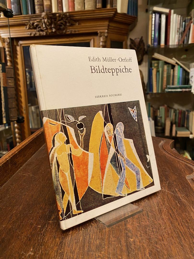 Müller-Ortloff, Edith (1911-1994). – Müller-Ortloff, Edith: Bildteppiche. Einführung von Mare Stahl. Konstanz, Seekreis Verlag, 1966. 4° (20x15), 83 S., mit zahlr. Abb. im Text und 16 farb Tafeln, ill OPbd, etwas angestaubt, kleiner Abrieb, gutes Exemplar, auf Vorsatz von Müller-Ortloff SIGNIERT ‚Mit den besten Grüssen! / 1966/67 Edith Müller-Ortloff‘