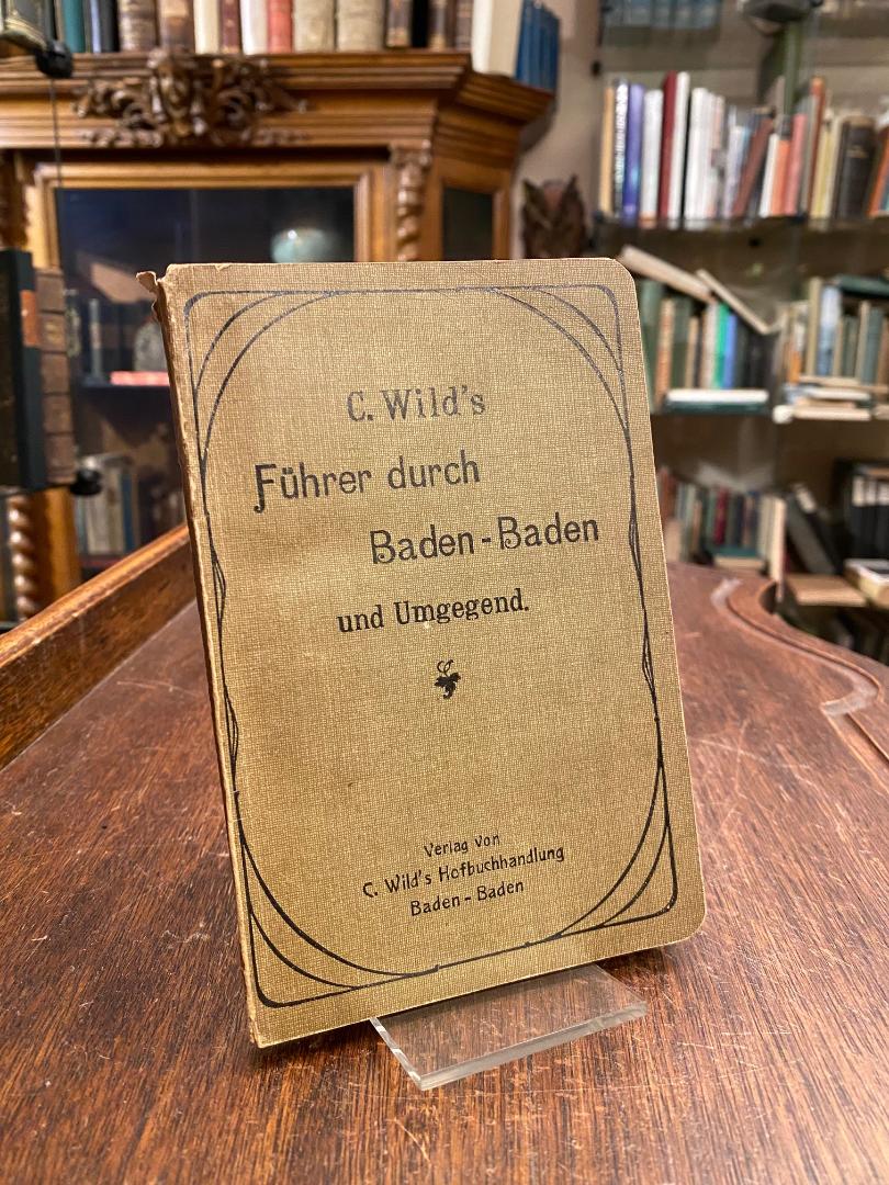 Baden-Baden. – Schnars, Karl Wilhelm: Baden-Baden und Umgegend : Neuester zuverlässiger Führer : Kleine Ausgabe mit neuem Plan der Stadt und einer Karte der Umgegend. 17., bedeutend vermehrte Aufl., Baden-Baden, Verlag der C. Wild’schen Hof-Buchhandlung, 1910-1911. kl8° (16x10), 3 Bl., 135 S., 3 Bl., mit zahlr. fotograf Aufnahmen auf Tafeln, doppelseitige Umgebungskarte, Deckelschlaufe mit zugehörigem 24seitigem Tarif-Buch, OKart (Brosch) mit Titeldruck, gerundete Ecken, dreiseitiger Rotschnitt, kleiner Name auf Vorsatz, gutes Exemplar, es fehlt der Stadtplan!