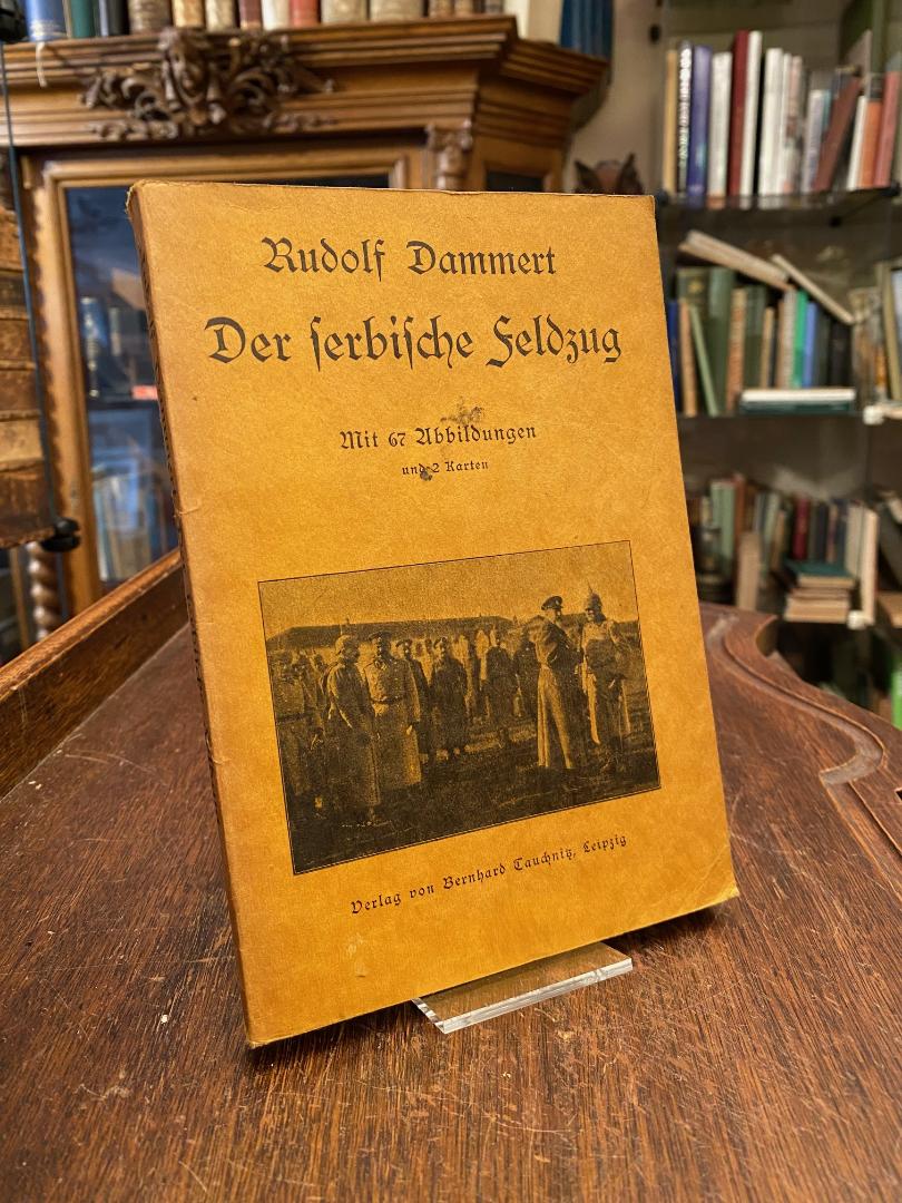 Dammert, Rudolf: Der serbische Feldzug : Erlebnisse deutscher Truppen. Leipzig, Verlag von Bernhard Tauchnitz, 1916. 8° (19x13), 192 S., mit 67 fotograf Aufnahmen, und 2 Karten, ill OKart (Brosch), untUmschlagecke mit schwachem Eckknick, sonst fest sauber und gepflegt,