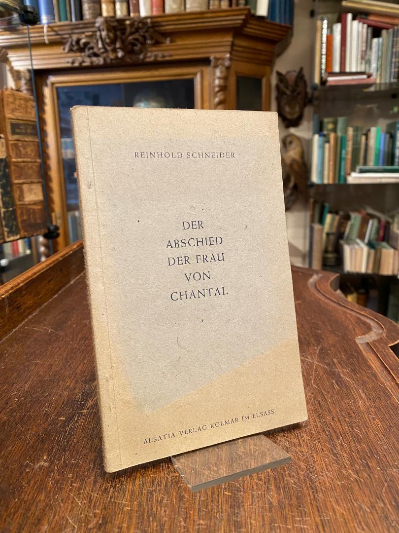 Schneider, Reinhold: Der Abschied der Frau von Chantal. Kolmar im Elsass, Alsatia Verlag, 1941. kl8° (17x11), 40 S., OKart (Brosch), etwas lichtrandig, leicht gebräunt, gutes Exemplar, von Reinhold Schneider SIGNIERT.–