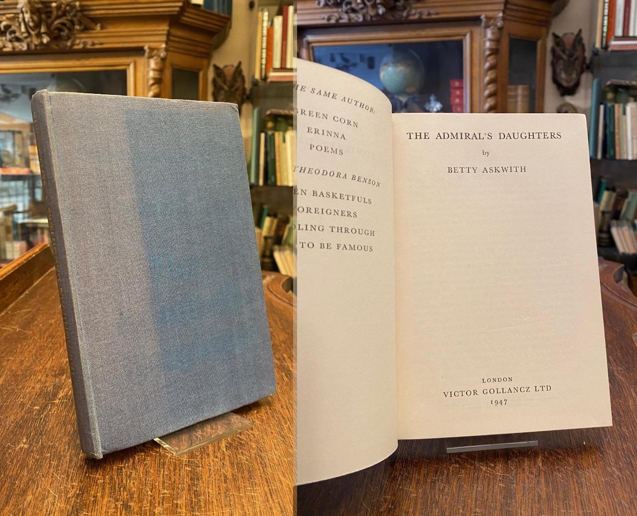 Askwith, Betty: The Admiral’s Daughter. London, Victor Gollancz, 1947. 8° (19x13), 190 p., publisher’s hardbound blue cloth, gilt title on spine, jacket missing, owner mark on endpaper, tight and clean, well cared,