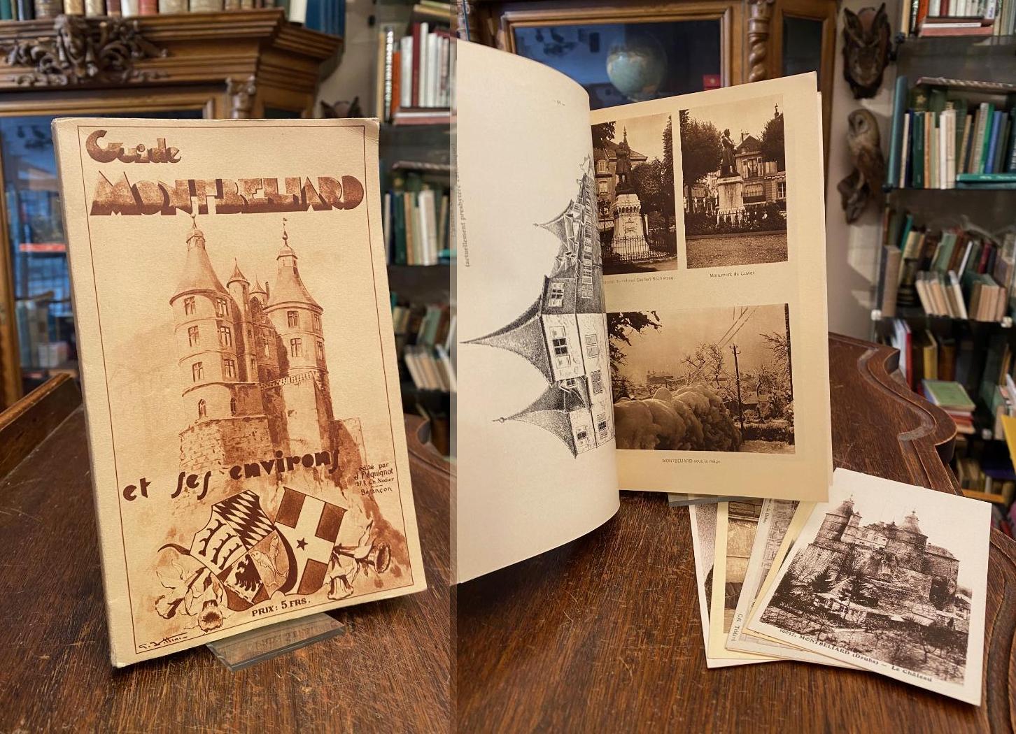 Montbeliard. – Guide Montbeliard : Montbeliard et ses environs. Besancon, J. Pequignot, [ca 1935]. 8° (21x14), 144, (2) p., avec nombreuses photos, 1 plan de ville deplie, beaucoup publicites, reliure d’editeur souple illustree, bel exemplaire, en plus inclus 6 cartes postales de la ville.–